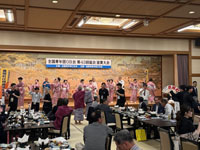 全国青年団OB会 第43回総会 2025年6月8日(日)、滋賀県大津市で開催された「全国青年団OB会 第43回総会 滋賀大会」にて江州音頭を披露しまいた。200人以上の参加者の皆さんに江州音頭をご覧いただき、一緒に江州音頭を踊っていただきました。